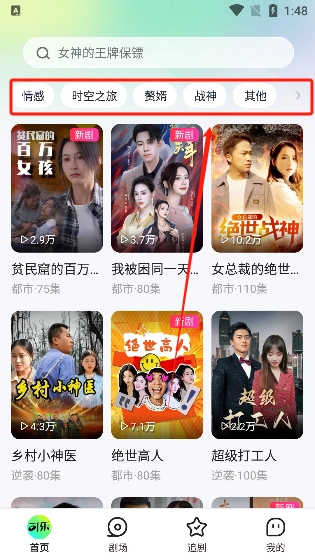 2、点击顶部的分类栏,就能按照题材快速筛选,精准找到你感兴趣的剧集风格。