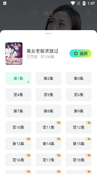 5、点击“看全集”按钮,即可查看完整的剧集列表,能自由选择想要开始追的集数,让追剧更加自由。