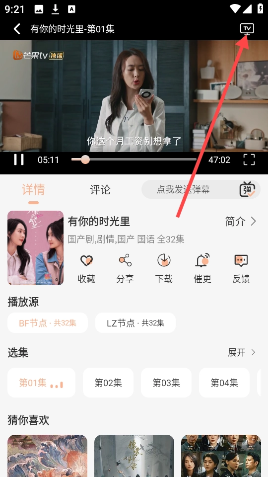 2、在视频播放界面的右上角找到“TV”投屏图标,点击该图标以开启投屏功能。