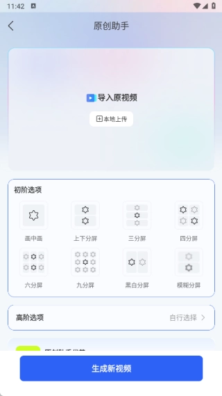 2、点击原创助手按钮,接着导入原视频,选择初阶选项和高阶选项,了解原创助手的优势,之后生成新视频。