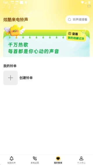 4、在我的歌单页面中可以快速创建铃单,感受不同音乐的独特魅力。