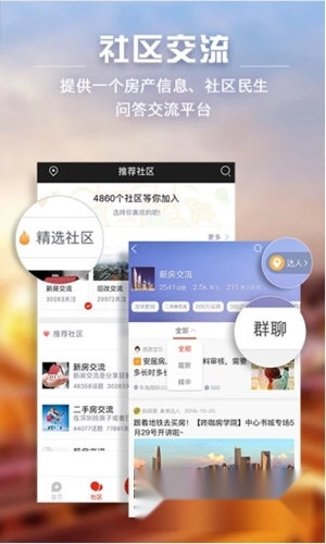 拥有新房、二手房、业主、临深、装修、亲子、教育、美食、香港、旅游、运动、时尚、购物、公益等超3500个社区与1500个主题圈子。