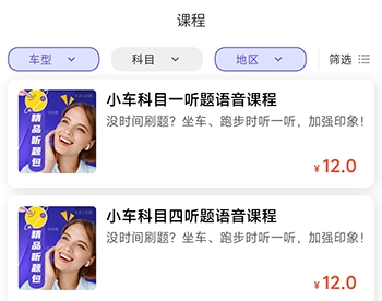 1、第一步是打开星唯学驾照应用,接着进入课程板块,然后点击你想购买的课程。