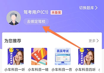 1、进入星唯学驾照个人中心页面,点击去绑定驾校;