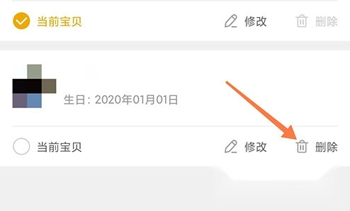 1、在成长派宝宝列表,点击宝宝条目右下角的删除;