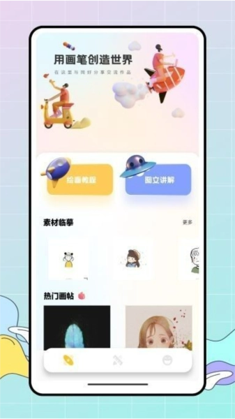 6、在线挑选心仪的绘画素材,丰富多样的主题素材,均能灵活选用。