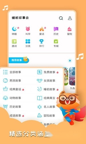 睡前故事会是一个能讲述各类故事的平台,涵盖了睡前故事、有声故事、儿歌、绘本故事、童话故事、胎教音乐等上万首宝宝喜爱的内容。听故事不仅能丰富儿童的知识储备,还能提升他们的思维能力与想象能力,让宝宝多听故事,妈妈也能更省心。