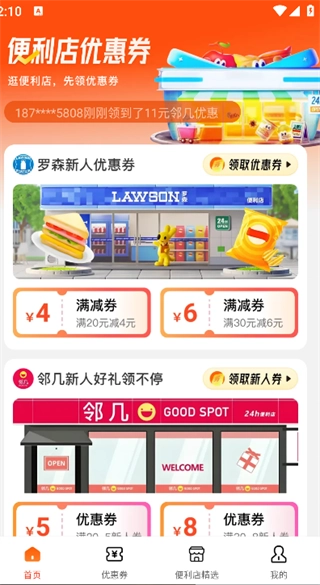 2.在首页即可看到便利店的优惠劵;