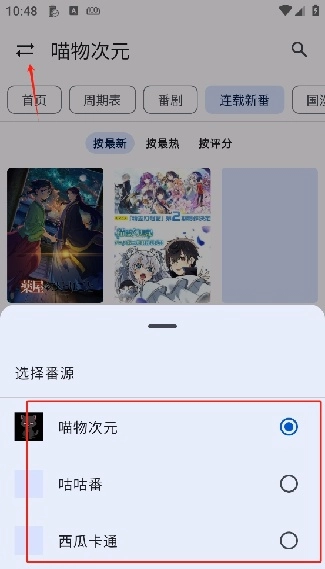 7.要是觉得当前内容不够丰富或者不符合你的喜好,可以点击左上角的杠杠,切换其他番剧观看。