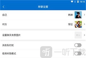 6、能够设置自己与对方的头像,也可以设置聊天背景图片;