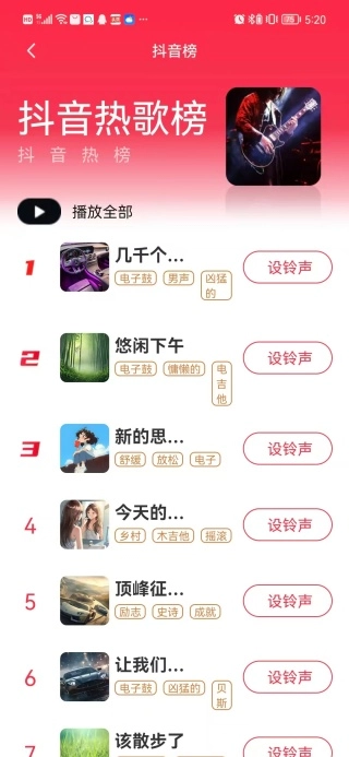 1、在铃声页面可以看到抖音热歌榜和铃声榜,还能了解当下流行的铃声。