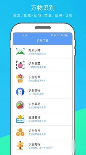 拍照识别功能:用户能够通过拍照的方式,对食品、动物、植物等各类物品进行识别。