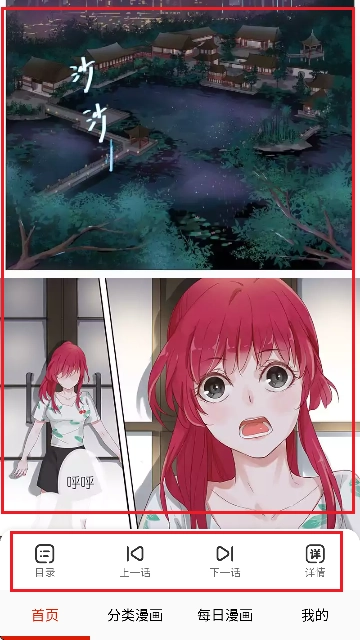 5、点击作品封面即可直接进入正文界面(如图所示),界面下方设有常用功能按钮,涵盖目录、上一话、下一话、详情等选项,整体阅读界面清爽简洁。
