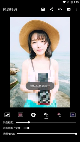 4、在涂抹马赛克模式下,需选择手指粗度、马赛克格式宽度以及清晰度。