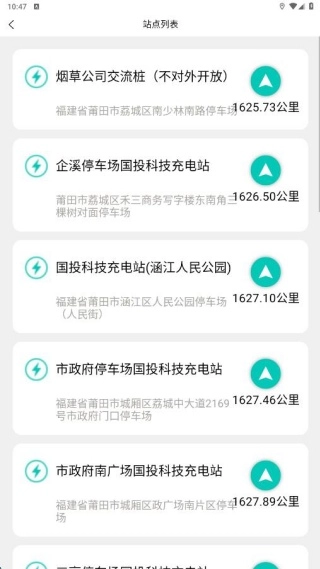4、点击电站列表,还能查看到更多充电点位置,让大家无需担心汽车充电服务。