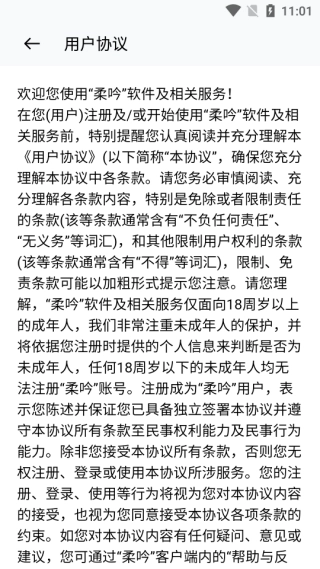 3、设有用户协议专区,对平台功能及玩法进行了详细介绍。