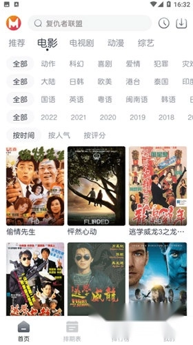 2、清爽整洁的软件界面,清晰地展示了各类题材的影视资源。