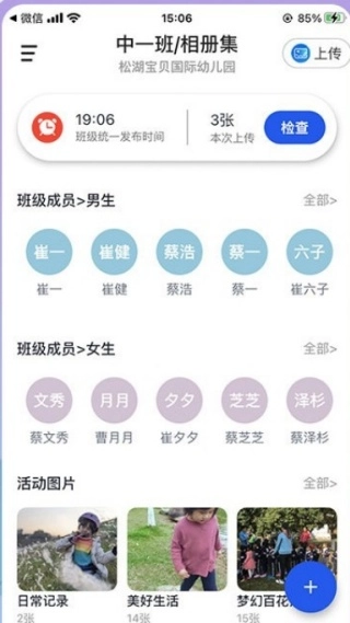 2、登录成功后,您可以查看中一班/相册集里的班级成员信息,以及活动图片等内容。