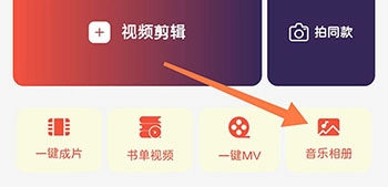 1、首先打开VV视频剪辑,点击主页面的音乐相册;