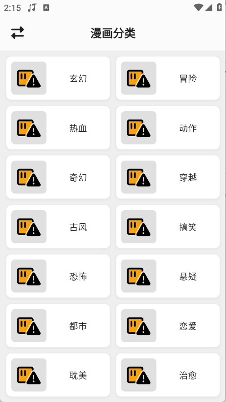 3、分类页面对漫画做了细致的分类,涵盖玄幻、冒险、穿越等类型。