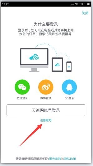 【天巡度假】精选全球度假线路,助您快速、便捷地找到适合自己的旅行方案。首先我们需要注册一个天巡旅行帐号点击“注册”