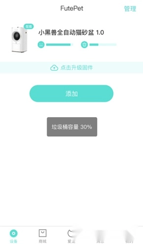 2、用户能够借助小黑兽宠物智能来添加和管理设备,在线进行设备的添加或移除操作,过程十分便捷高效。