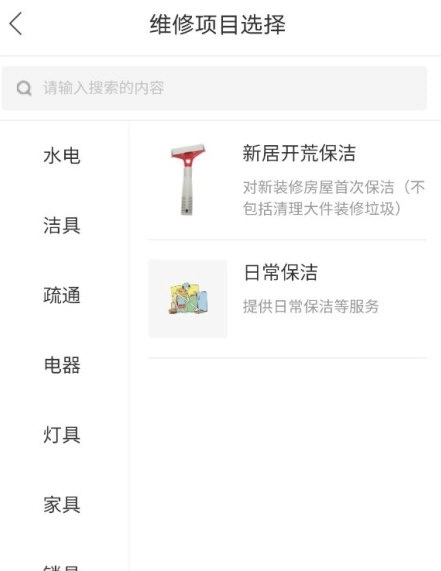 3、使用搜索功能输入关键词查找维修项目,在选择维修项目时能够找到对应的项目内容。