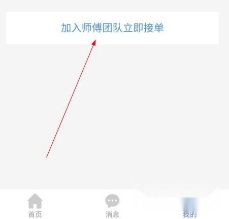 1、打开91畅修保应用,点击底部导航栏的“我的”选项,然后在页面中找到并点击“加入师傅团队立即接单”按钮。