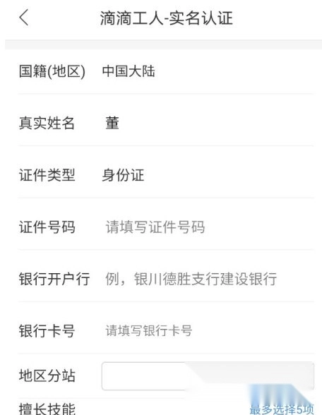 2、填写个人资料信息即可