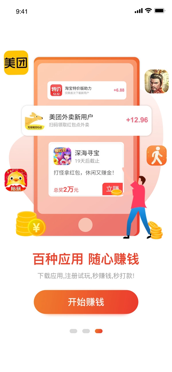 1、新用户海量任务、赚钱玩法超多,下应用、玩、刷视频、看小说,动动手指几分钟完成任务;2、支持永久2元提取;常见问题:提取免审核极速到账,支持最低2元提取;3、碎片时间做任务,应用,注册试玩,秒赚钱,秒打款