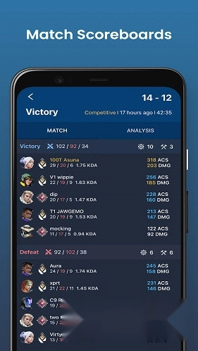 此外,软件不仅能追踪您的战斗数据并提供数据分析服务,还可轻松查看所有公开个人资料的瓦罗兰特玩家数据,包括仓库道具查询、个人数据汇总、全球胜率数据以及对局得分板查询等功能,方便用户进行战后复盘,找到自身不足,实现快速提升。