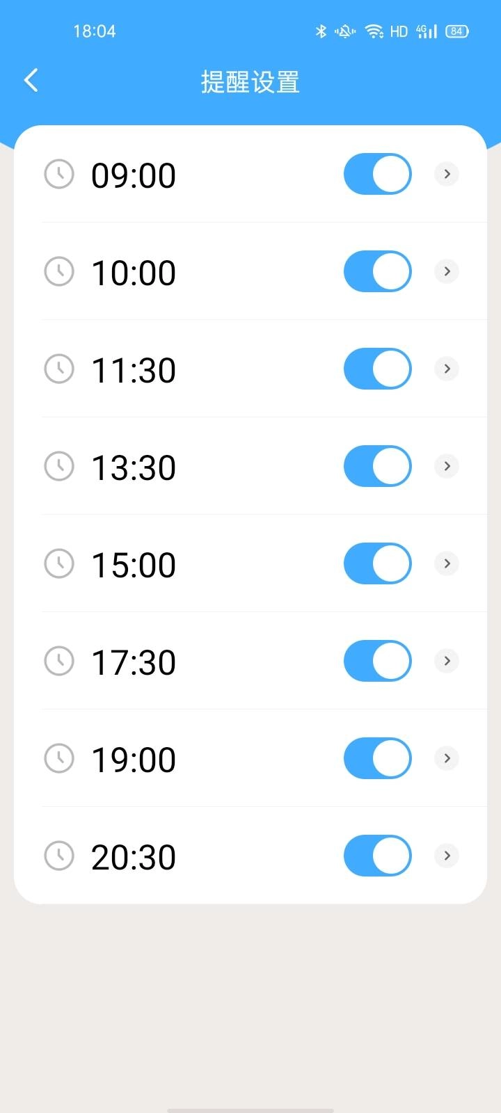 3、还可自定义设置提醒时间,到点提醒你该喝水啦。