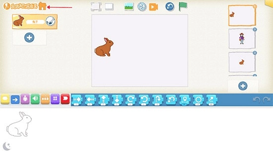1、打开Scratch后,在已完成作品的界面中,点击作品左上角的房子图标就能完成保存操作。