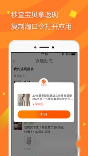 使用拾惠街应用,能让你在淘宝的每一次购物都获得返现。