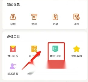 1、打开拾惠街,点击【我的】进入个人中心,接着点击【找回订单】选项。