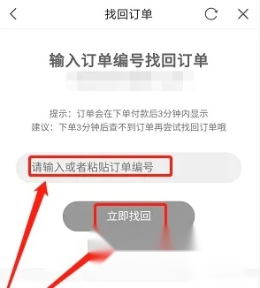 2、进入订单找回界面,填写订单编号后,点击【立即找回】按钮。