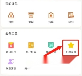 1、打开拾惠街首页,点击【我的】进入个人中心,再点击【拾惠收藏】。