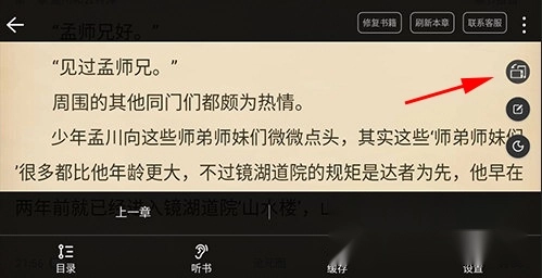 2、进入阅读页面之后点击听书功能即可听书;