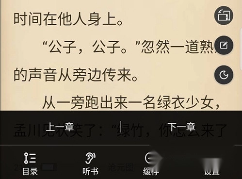 1、当爱趣小说处于横屏模式时,轻点屏幕,接着点击屏幕右侧最顶端的圆形按钮。