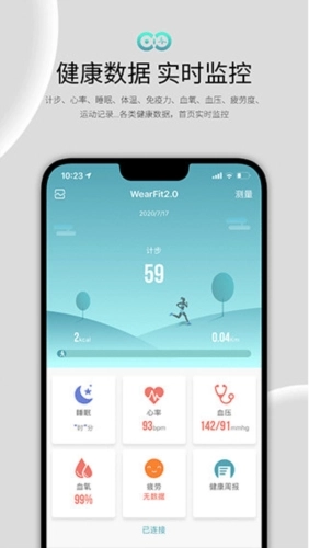 wearfit2.0是一款专注于健康管理的智能手环应用,致力于为用户打造全方位的健康监测体验。借助该应用,用户能便捷查看自身的运动数据与健康状态。应用了多样化功能模块,包括跑步计时、睡眠监测等,使用户可随时掌握运动动态。此外,wearfit还具备血氧检测、血压监测等专业健康数据采集功能,助力用户及时了解身体情况。wearfit2.0采用简洁直观的界面设计,操作流程简单高效。用户只需点击对应功能按钮,即可快速进入所需功能页面,实现健康数据的快速管理。同时,应用还配备了闹钟功能,帮助用户科学规划作息时间。作为一款功能丰富且操作便捷的健康管理工具,wearfit2.0为用户的健康提供贴心守护,带来高效便捷的健康管理服务。