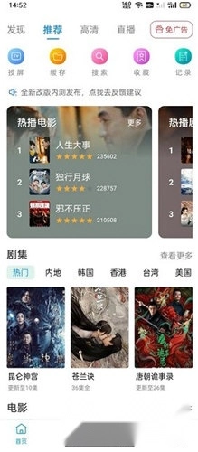 热门电视剧与院线影片会及时推送,您可以自行挑选喜欢的内容观看。