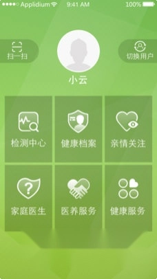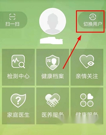 1、打开小云健康后,在软件首页的功能界面中,找到并点击“切换用户”这一功能选项。