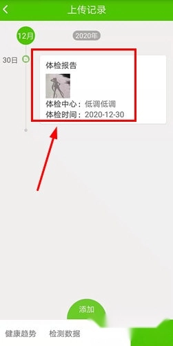 1、在软件首页找到并点击“健康档案”功能入口,接着在健康档案的记录页面里选取之前创建的健康数据档案。