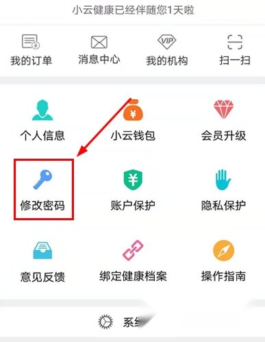 1、点击个人头像进入个人页面,接着就能看到“修改密码”的功能选项,点击该选项即可进入相关界面。