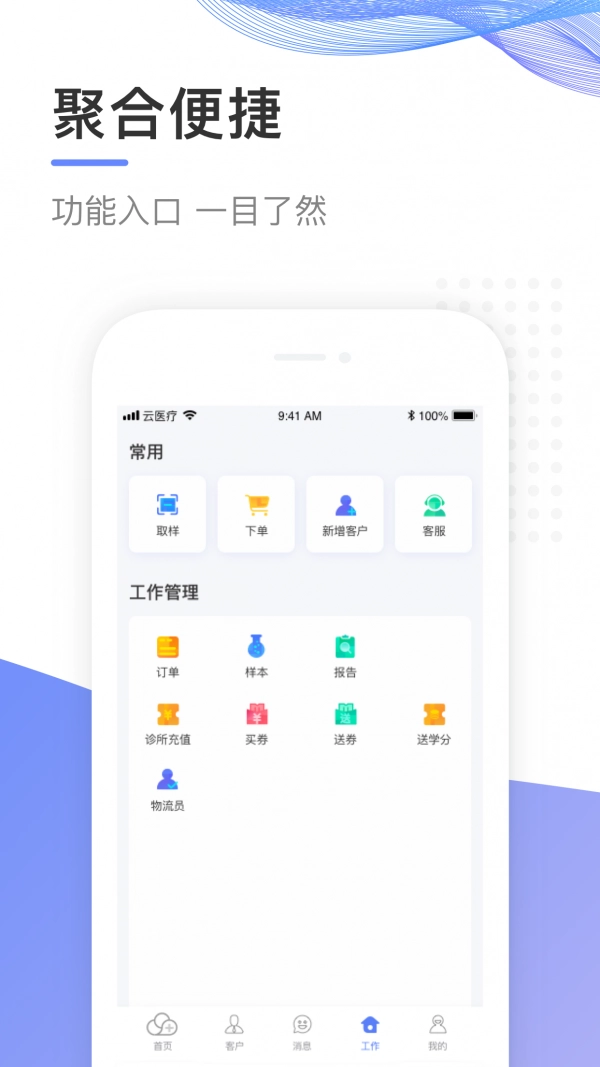 赋能基层医疗,让优质医疗服务在家门口就能享受到;【首页】整合了各类便捷功能,入口清晰明了;【订单】支持实时追踪,业务数据动态更新便于掌握;【取样】提供专业支持,流程规范且服务周到全面;【账户】遵循多劳多得原则,助力轻松实现财务自由;-【联系我们】客服热线:4000456120