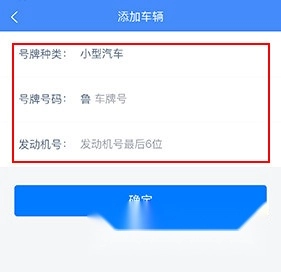 4、输入车辆信息,点击下方的“确定”即可。