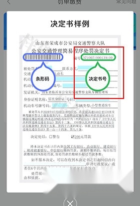 3、若不清楚决定书编号,可找到交警开具的处罚决定书,编号的位置在图片所示处。