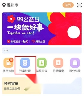 1、打开违章缴费易,点击“违章处罚”。