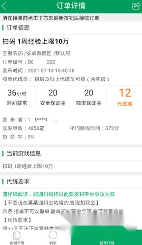1、打开代练宝大厅界面,挑选需要代打的订单,查看订单的具体信息。