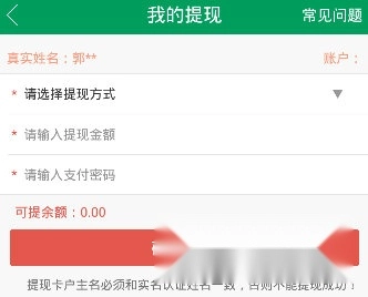 2、点击【我要提现】,选定提现方式,填写提现金额和支付密码,最后点击【确认提现】就完成了。